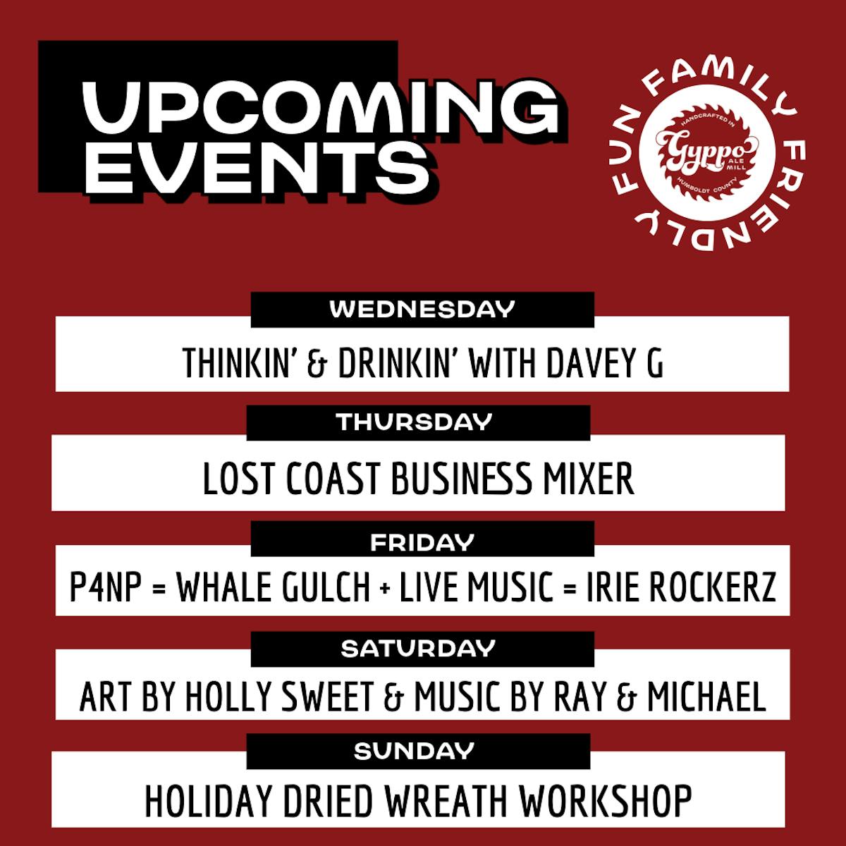 It’s a week jam-packed with good vibes, great food, and even better company at Gyppo Ale Mill! Whether you're looking to connect, give back, or just indulge, we’ve got something for everyone.