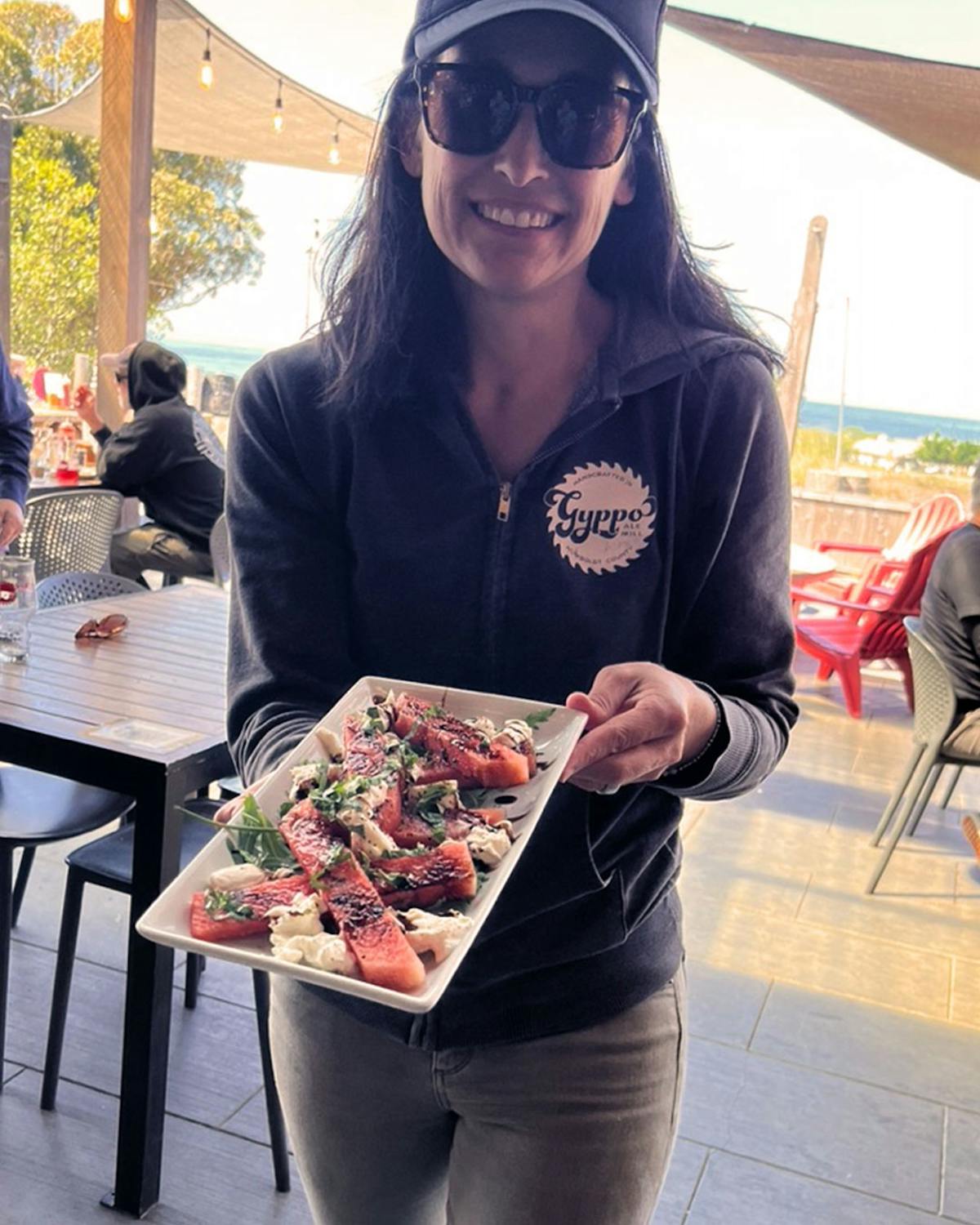 Watermelon in the fall? Yes, please! These beauties from Briceland Farms are so juicy, they practically pop when you slice into them. We couldn’t resist featuring them in our latest dish—arugula, Briceland Farms watermelon, creamy burrata, olive oil, balsamic vinegar, salt, pepper, and a basil garnish. Thanks to everyone who voted on the plating—this vibrant, mouthwatering creation is all thanks to you! Come and taste the best of the season at Gyppo Ale Mill!