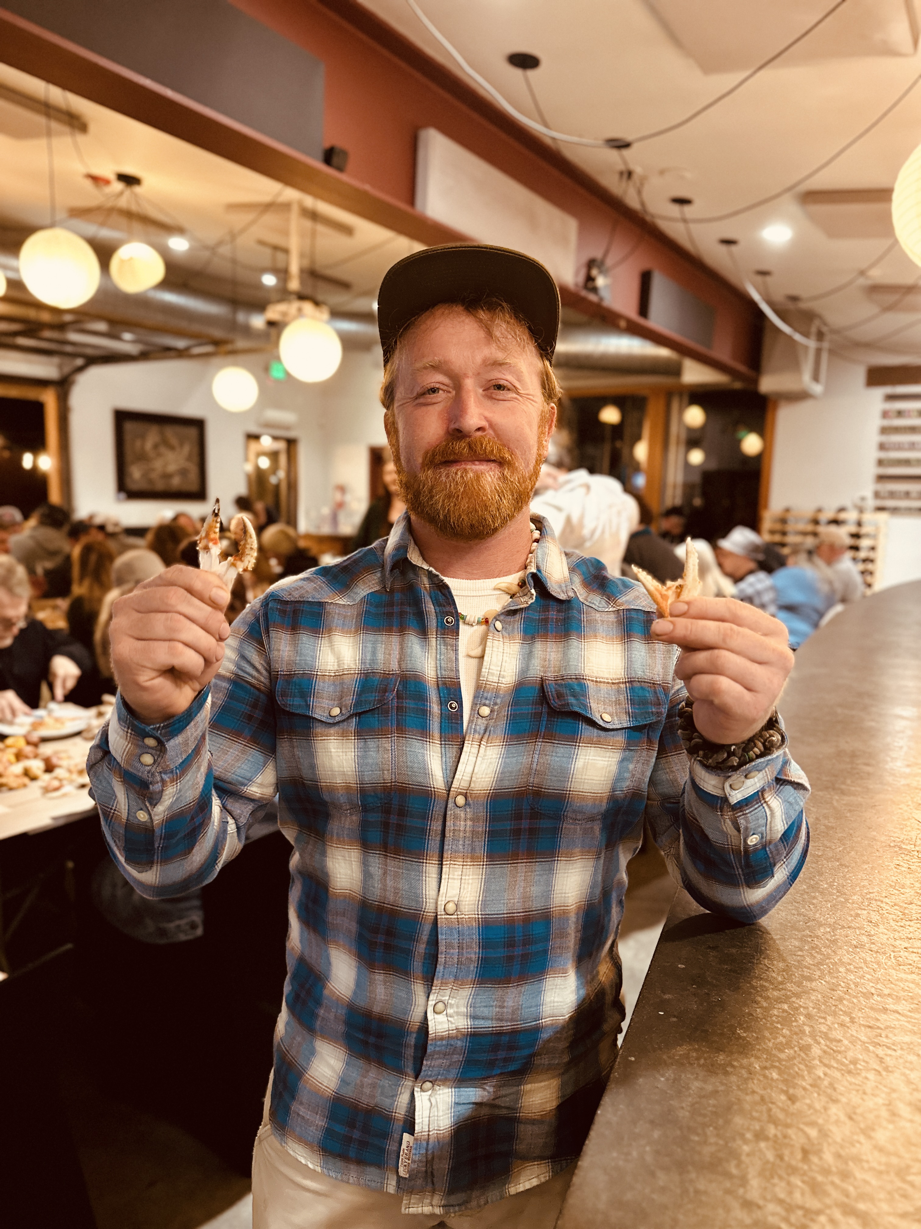 This dinner wouldn’t have happened without collaboration. We’re deeply grateful to Sam Stebnicki, who holds a receiver’s permit, and Luke Sack, who holds a crab permit and was out there working during the heart of the season. This time of year is demanding for local fishermen, and being able to support that work—right here, at the table—matters to us.