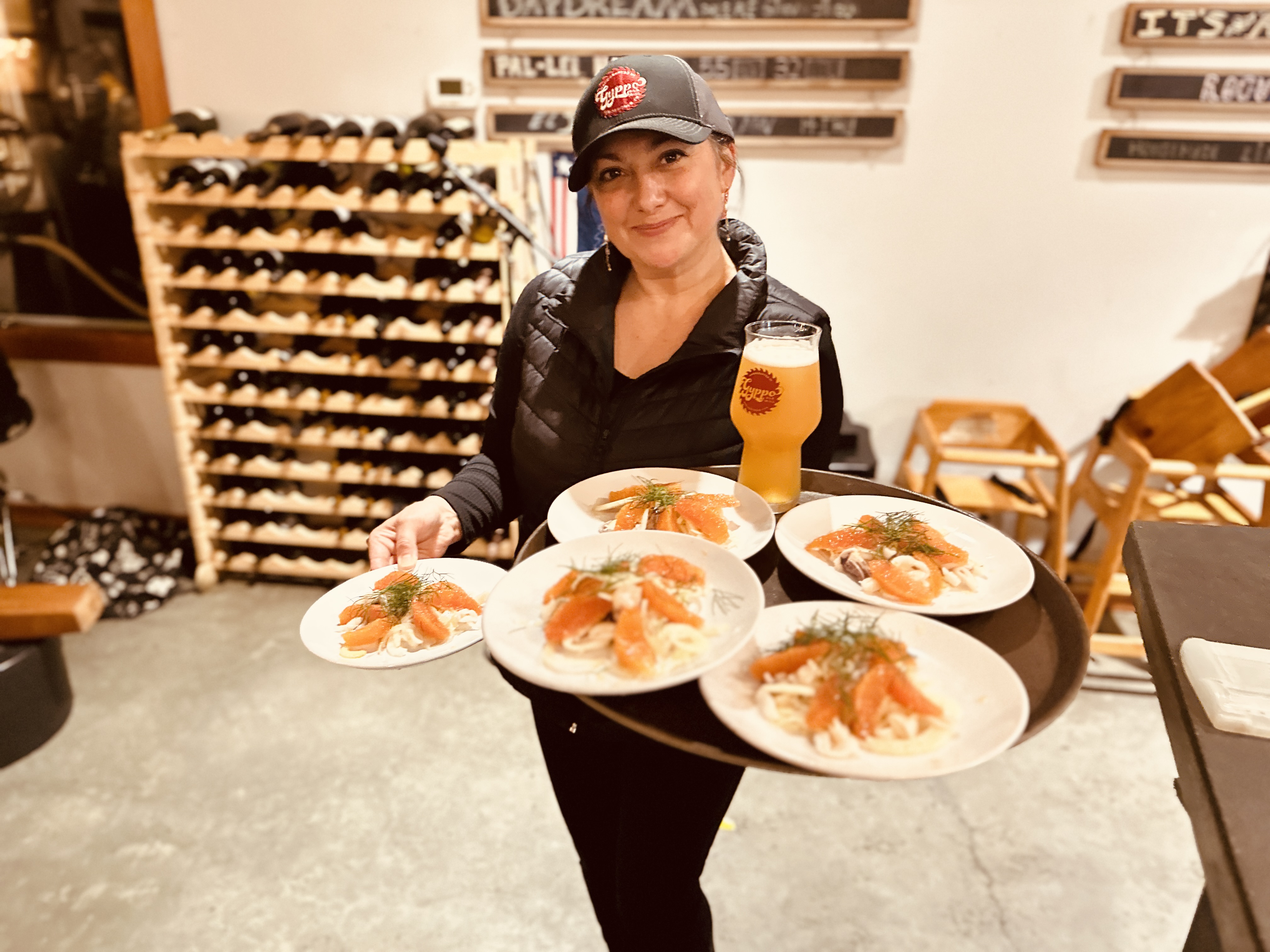 Salt Water & Citrus wasn’t just a menu. It was a snapshot of time and place. Every Meyer lemon came from my backyard tree — armfuls at a time. Nearly all the crab we serve at Gyppo comes off Luke’s little blue boat, just him out there pulling pots and bringing in Dungeness. And this dinner marked the first time I collaborated in a restaurant setting with Diana Totton — a powerhouse local woman who grew up here, once worked at the Shelter Cove Grotto, and now harvests rock crab while building her next chapter. When she tried to secure permits for Dungeness and salmon and was told no, she asked a better question: “What can I get?” The answer was rock crab. Smaller, sweeter, different — and full of possibility.