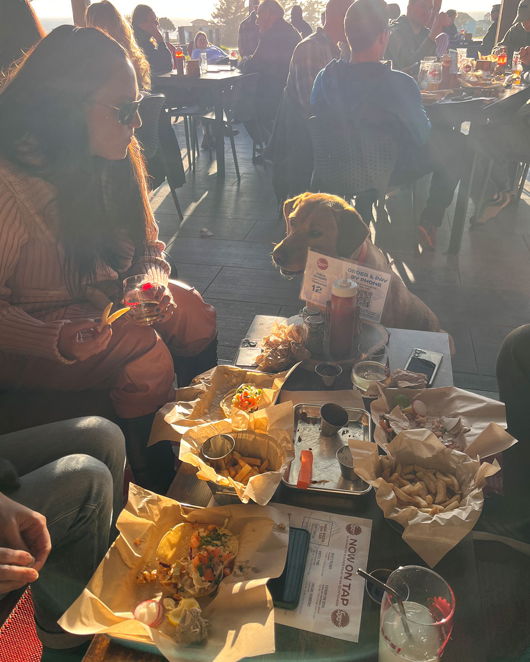 Cooper's at it again, giving those puppy eyes from under the table at Gyppo Ale Mill. In our beer garden, the art of subtle begging is practiced by canines like Cooper, whose owners laugh at his shenanigans. It's a family affair here, with ocean breezes carrying the scent of scratch-made delights, tempting even our four-legged patrons. We keep it cozy, leash-and-love style, ensuring every guest, whether biped or quadruped, experiences the best of the Lost Coast—responsibly, of course. And when Cooper visits, it's proof we're doing something right in this nook of craft beer and comfort food paradise.