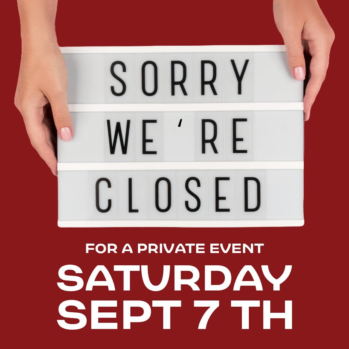 We’ll be closed on Saturday, September 7th